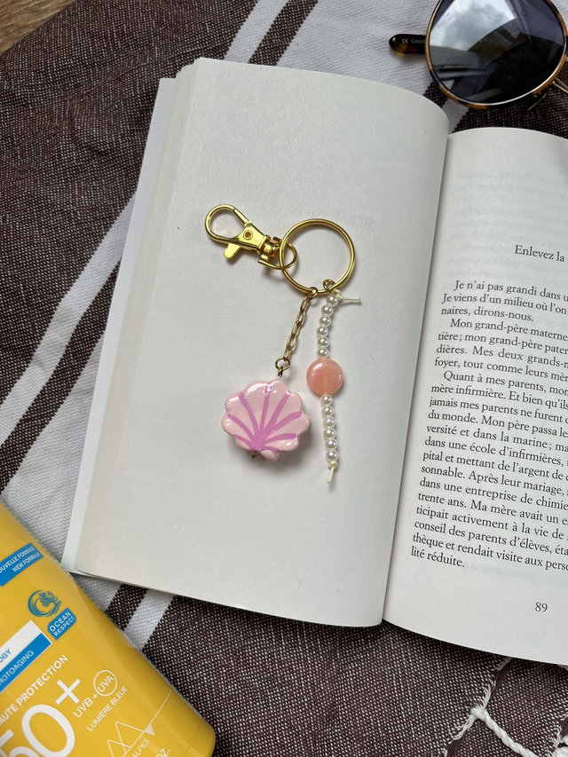Porte clé coquillage rose 🐚 - 100% fait-main 🌞